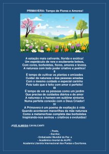 Poema PRIMAVERA: TEMPO DE FLORES E AMORES – Autor Jozé Almeida Cavalcanti.